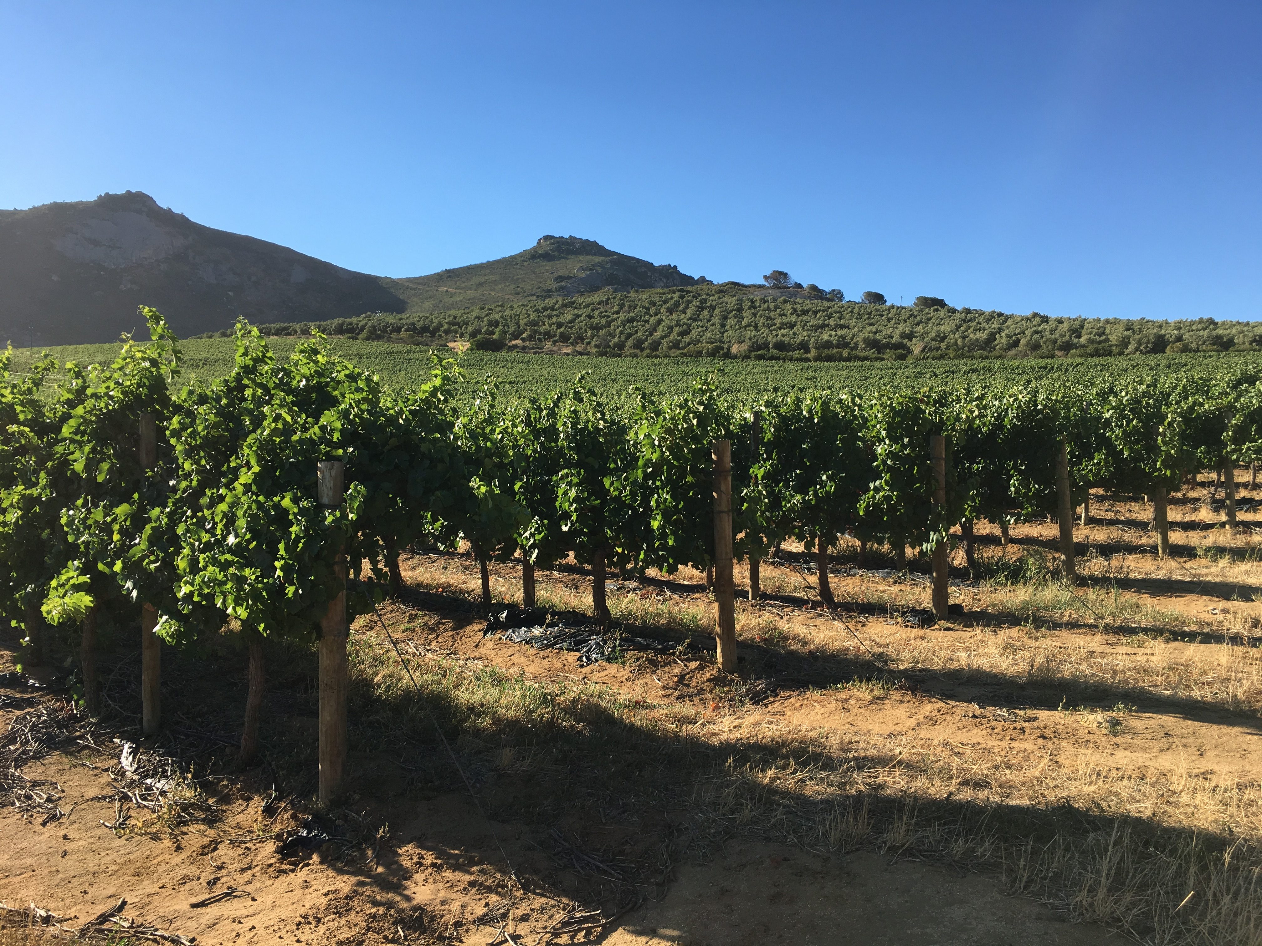 As shown in the picture above, lots of land in Paardeberg are dry and hot. Vondeling (at the foothill) benefits from the cooler wind drawn from Paardeberg mountain and the partial shade. Results are 5°C cooler than the Greater Paarl region, and longer growing season. The temperature at night drops and the acidity is retained.
