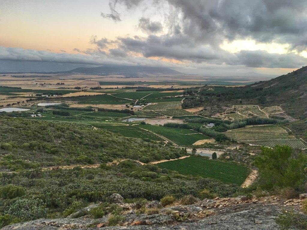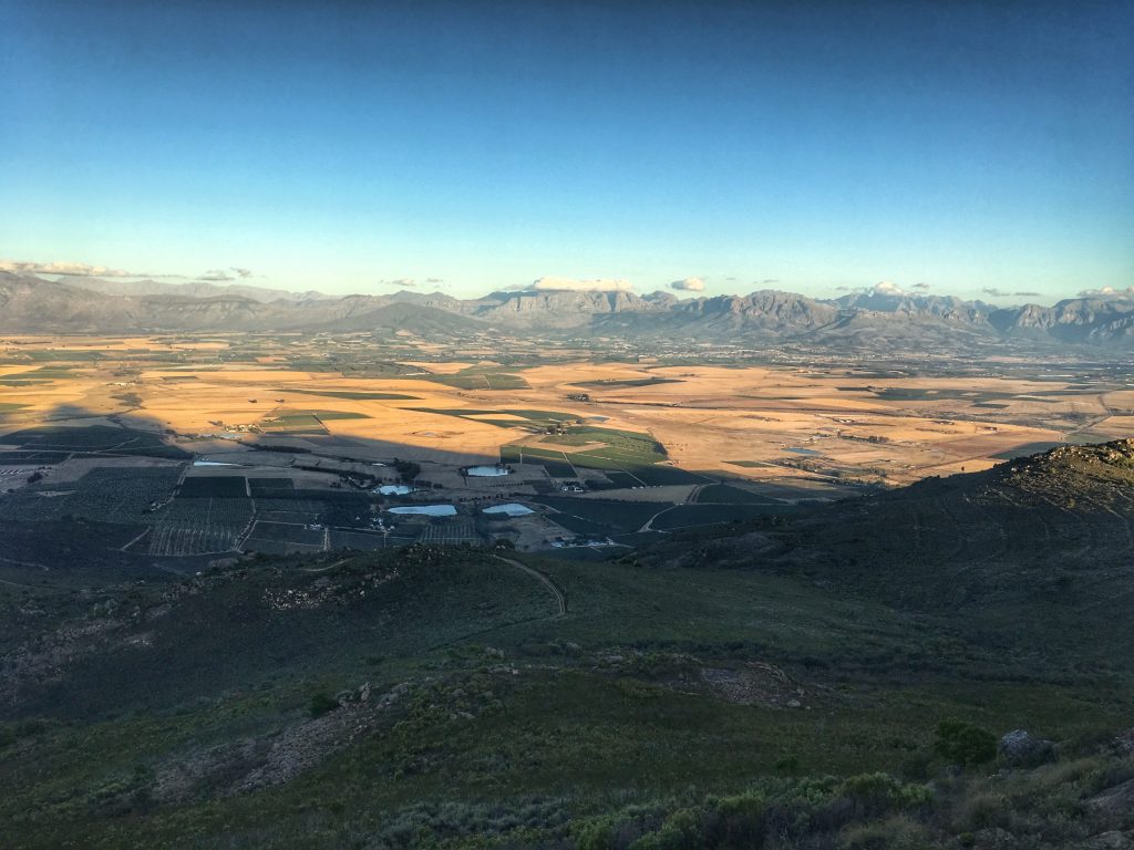 Picture taken on Paardeberg mountain just before sunset. Vondeling Wines located on the foothill.
