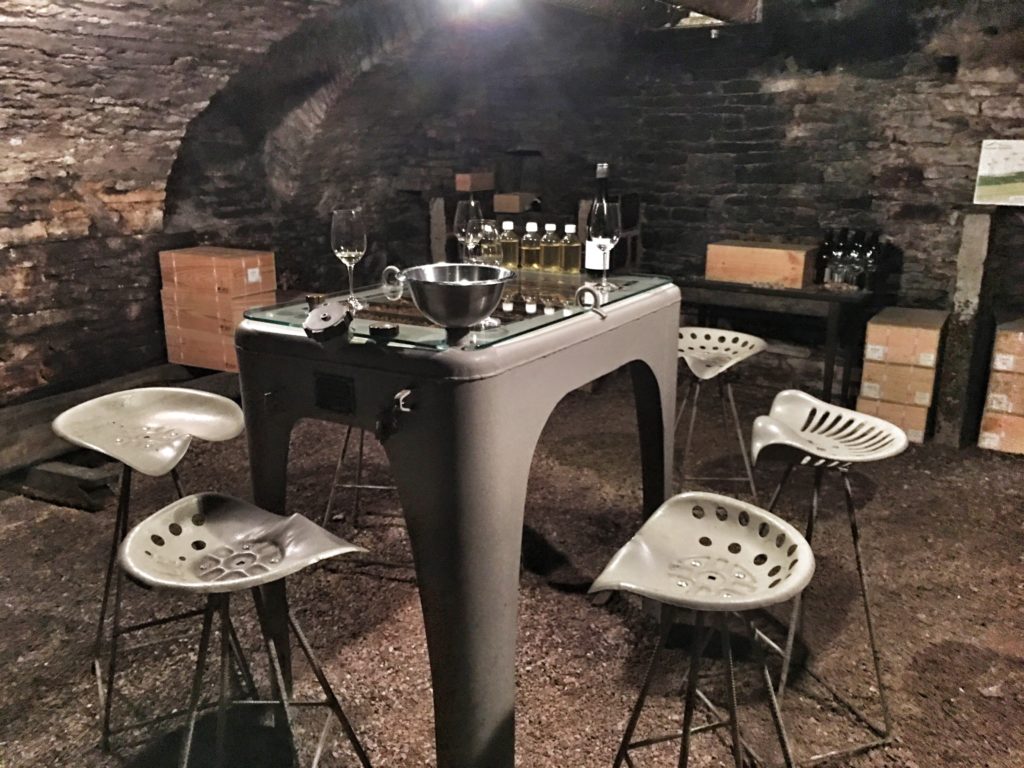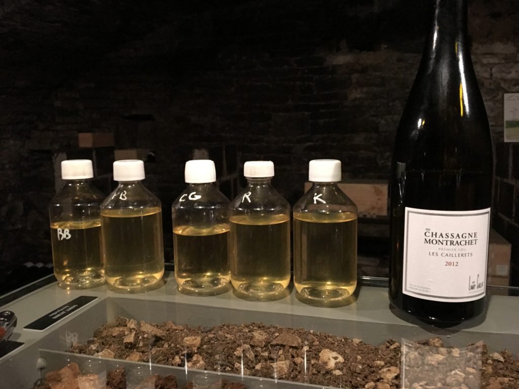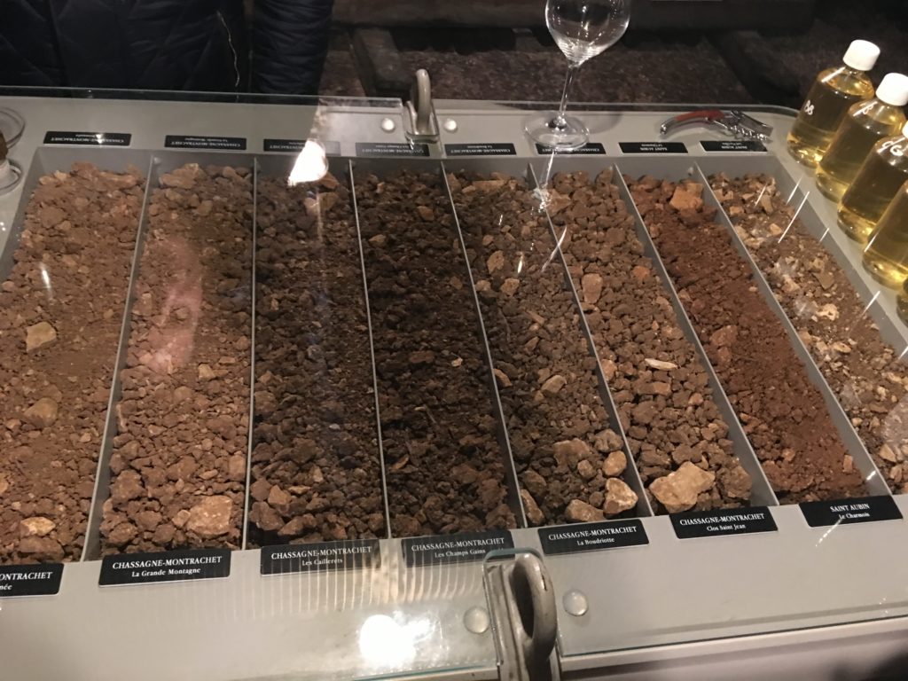 At the back of his dark and cool (very cold!) cellar sits a well crafted handmade table for tasting, on top of which shows 8 rows of soil from different parts of the appellations around the estate. Not to mention he also installed a detachable bucket that functions as a spitoon that can be easily removed and cleaned. Bravo!